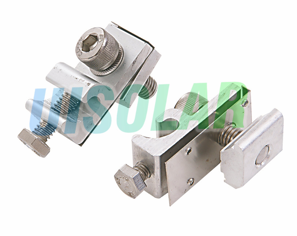 The UISOLAR Grounding parts include special washers ( diffenert washers for grounding clip, grounding lug and bounding jumper) with sharp ridges on them that penetrate through the non-conductive coatings of the aluminum module frames and mounting racks. The mounts themselves are then grounded so the entire assembly is grounded.
